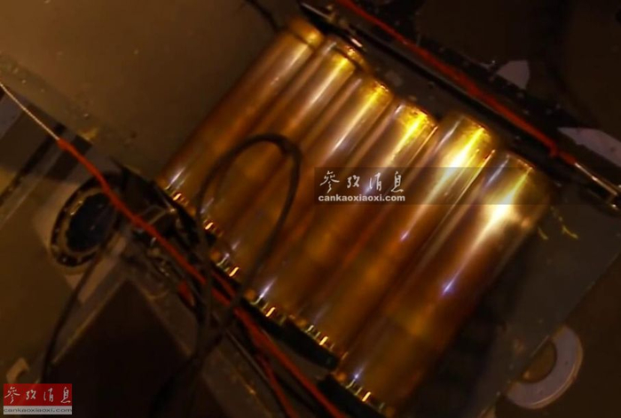 舱内拍摄的GAU-12转管炮炮身及壮观的弹链系统。