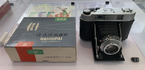 但海鸥牌照相机则是另一个故事。最早上海产的照相机是1958年的58-1型,因为当时没有外国产品来源,就自己研发了上海牌相机,当然也是模仿了西方的一些设计。但因为上海牌产品多是为了出口换取外汇,但国际上有规定,不能以地名来作为品牌商标,所以换成寓意“乘风破浪”的海鸥牌,展览中的一台203型号的海鸥牌相机大约是60年代左右生产的。