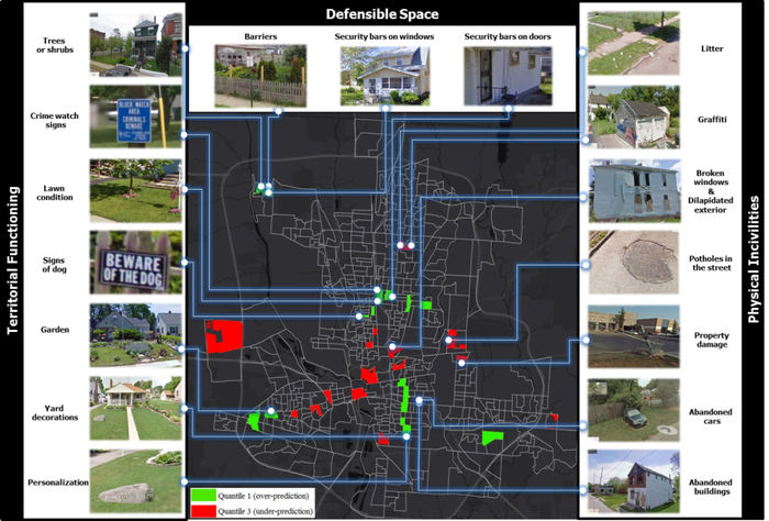 “公共秩序是一种很脆弱的东西,如果第一个破窗没被及时修理,很快所有的窗户都会被打破。” ——詹姆斯·威尔逊(美国政治学家) 近年来,大量实证研究发现,城市建成环境在诱发或抑制暴力犯罪中具有重要作用。特别是,破窗理论的实证研究已证明,建成环境失序是导致犯罪的重要因素,包括破窗、空置房屋、废弃房屋、街道上的废弃汽车、违法涂鸦和较差的街道照明条件等。目前的研究普遍面临精细尺度的定量环境数据获取困难的问题,而传统的建成环境审计方法在评估建成环境特征时具有昂贵、耗时、繁琐等不足之处。 西安交通大学贺力博士和他的合作者Antonio Paez、Desheng Liu在新近发表的研究中发现,谷歌街景影像可以有效反映城市建成环境的微观特征和暴力犯罪空间分布之间的关系。 谷歌街景所展示的建成环境优劣对比。上图的建筑充满破窗、草坪失修、围栏损坏等。下图的建筑则相反,草坪和花园养护状态较好,建筑物前灌木多样,门牌号标志极具个性化。 哈佛大学社会学家Robert Sampson和西蒙菲莎大学犯罪学家Martin Andreson教授指出,从社会解组理论和破窗理论的视角看,社会失序和建成环境失序均会诱导暴力犯罪。这种看法有其内在合理性,街区建成环境的物理特征是邻里生态学的一个组成部分(Greensberg和Schneider,1994),从这个意义上说,社区内显著的环境衰退迹象和环境失序,往往表明街区内缺乏非正式的社会控制和集体效能(Sampson等,1997)。更进一步,会导致暴力犯罪集中聚集在城市内某些热点区域。虽然研究人员对这种复杂的“社会—环境”相互作用机制越来越感兴趣(Malleson和Birkin,2012),但他们正面临建成环境精细量化数据的缺失和难以获取等困难,这种困难对理解建成环境对城市犯罪分布的作用机制构成了障碍。 环境审计是搜集建成环境微观特征数据的直接方式,也是使用最广泛的方式,在过去几十年中,学者们开发并测试了大量环境审计工具,用于步行、骑行等户外活动和邻里安全的环境审计研究。但利用这些工具进行环境审计的传统做法,仍然是通过对城市空间进行随机采样,选择环境审计地点,再由审计员亲自进入审计地点进行现场观察和数据采集。这种做法成本高、耗时、繁琐,特别是对于大规模研究、研究地点很分散、研究地点有犯罪风险的情况。 谷歌街景影像数据(Google Street View,GSV)正被越来越多的研究者用于城市环境的调查研究,帮助研究者以“虚拟环境审计”的方式。密歇根大学的Philippa Clarke教授和西澳大利亚大学的Nicole Edwards教授在研究中发现,实地审计与基于谷歌街景影像的“虚拟审计”之间具有极高的一致性,并且可以节省高达90%的审计时间。贺力博士在自己的研究阐述了如何使用谷歌街景数据研究暴力犯罪与城市住宅区的物理特征之间的关系。 哈佛大学社会学家Robert Sampson教授和中佛罗里达大学的犯罪学家Jacinta Gau教授认为,环境失序和暴力犯罪同时会受到聚集性的社会经济剥夺的影响,因此,在缺乏对街区贫困程度和集体效能的控制情况下,环境失序和犯罪之间的联系可能会模糊不清。此外,印第安纳大学犯罪学家Thomas Stucky教授指出,环境失序对犯罪的影响强弱程度取决于区域社会经济条件,如人口流动性的变化和区域经济水平。因此,为了更有效地衡量建成环境对犯罪分布的影响,需要通过犯罪学理论所支持的社会经济和人口变量来控制区域的社会结构条件。 贺力的研究解决了这个问题,研究者在选择环境审计地点之前,先使用回归模型方法,控制了大量社会经济水平对暴力犯罪分布的影响。在剥离社会经济水平的影响之后,以谷歌街景数据为基础,单独研究建成环境和犯罪的关系,可以更清晰、系统地描述环境失序对犯罪的作用机制。 以美国俄亥俄州哥伦布市的犯罪为例,该研究发现,三类建成环境特征(物理特征的衰败、领地功能、可防卫空间)与暴力犯罪的分布显著相关(图2)。物理特征的衰败指标包括违法涂鸦、建筑物损坏、路面破损、废弃建筑物、废弃车辆、垃圾、建筑物屋顶修缮程度、破窗等。领地功能特征包含社区守望标志、建筑物周边植被分布、建筑物的个性化设计、花园状况、草坪修缮状况、“当心有狗”的标志等指标。可防卫空间特征包括建筑物围栏、防盗门、防护网等指标。 从谷歌街景观测到的与犯罪显著关联的建成环境因素。绿色和红色区域为该研究选择的环境审计街区,箭头指向绿色区域的环境特征是犯罪抑制性因素,在犯罪低发区中出现的频率更高。箭头指向红色区域的环境特征为犯罪诱导性因素,在犯罪高发区中出现的频率更高。 该研究指出,当剥离了社会经济水平对犯罪的影响作用后,在犯罪低发地区通过谷歌街景能更频繁地观察到围栏、防护网和防盗门、庭院装饰、门牌号码的个性化、良好的屋顶状况、邻里守望标志和“当心有狗”的标志(图3)。相反,鲜见废弃建筑物、废弃汽车、涂鸦、密集的垃圾、草坪状况不佳、外墙破损和破窗。而在犯罪高发区域,通过谷歌街景可以更频繁地观察到环境失序现象,例如,废弃建筑物和废弃汽车出现更为频繁,涂鸦、密集的垃圾、草坪状况不佳、外部破旧和窗户破损也出现更为频繁,且高于预期(图4)。另外,这些地方普遍缺乏围栏、防盗门、防护网、房屋装饰个性化、社区守望标志和“当心有狗”标志。 从谷歌街景图
