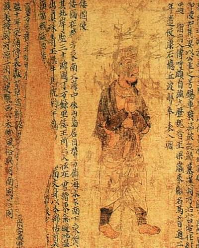 这幅谜一般的倭人画像其实是《梁职贡图》的一部分,此图为梁元帝萧绎所作,描绘了三十多国使者的形象,画像旁还附有题记,介绍朝贡诸国的历史、地理和风俗等。这一画像上的倭国使者裹头徒跣,前胸袒露,上身仅披有一条结束相连的横幅,其古旧原始的形象与衣衫华美的百济等国使者相比,显得十分寒酸。在此,我们很自然地提出一个疑问:既然倭国的朝贡早已结束,那么《梁职贡图》的依据是什么,梁人是否真的见过倭人?