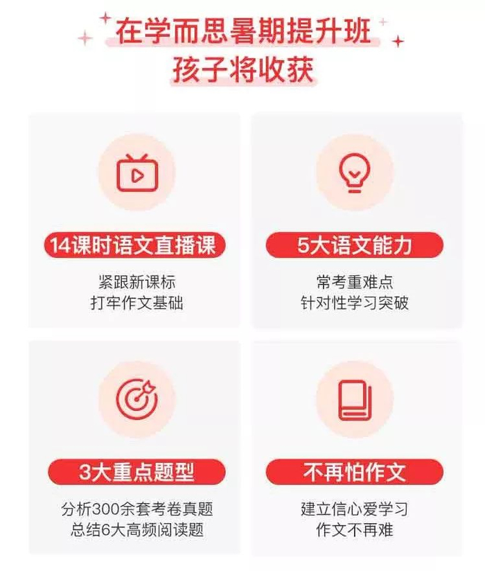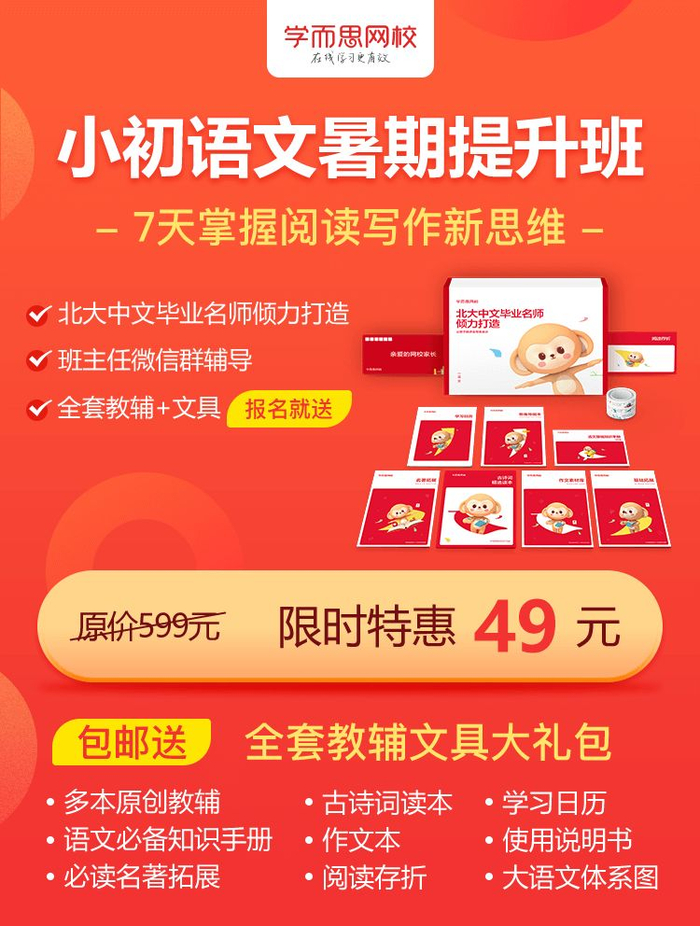 顺提一句,我看他们网校讯息的时候发现,6月正赶上他们暑期钜惠活动,原价599元的「小初语文暑期提升班」,现在只需49元,仅限前200名!