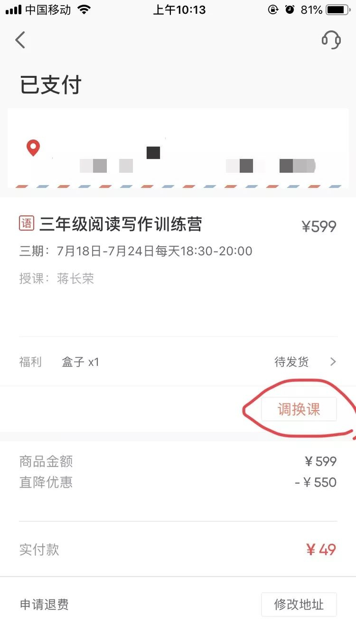 在第一次课程开课前,支持调班,在APP内「我的订单」—「对应课程」即可操作。
