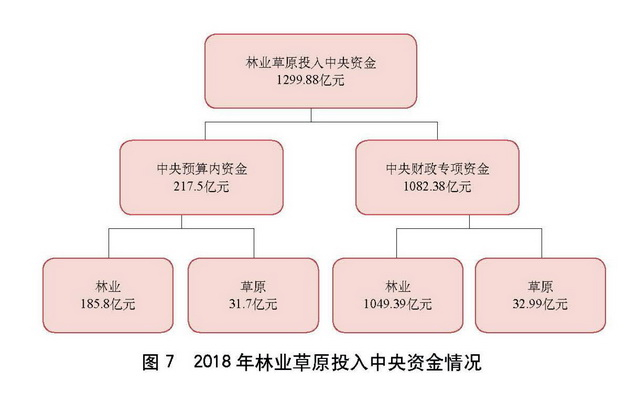 2018年林业草原投入中央资金情况。资料来源:2018年全国林业和草原发展统计公报