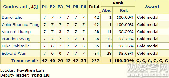原标题:国际数学奥赛中国队4年后重登第一,6名队员均获金牌