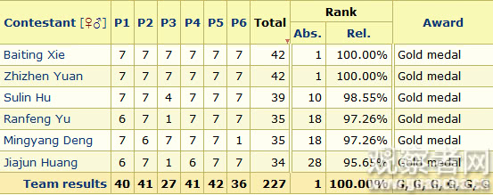 值得注意的是,IMO网站显示,参赛者个人满分为42分,个人金牌分数线为31分。而中国诞生了2名满分选手,且6名队员均摘得金牌,这也是8年来中国队员再次全部摘金。