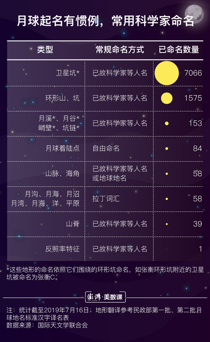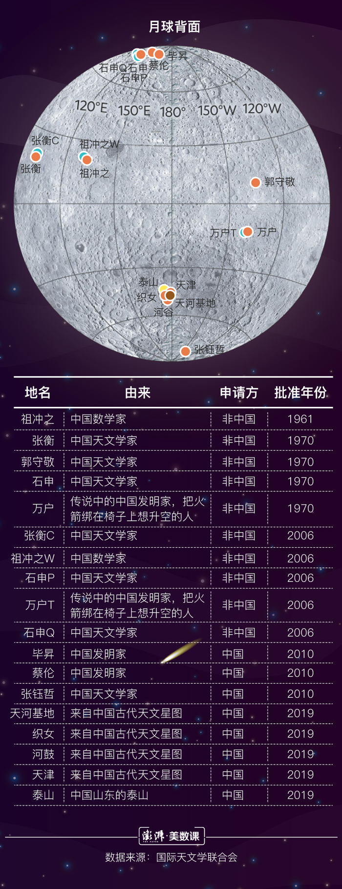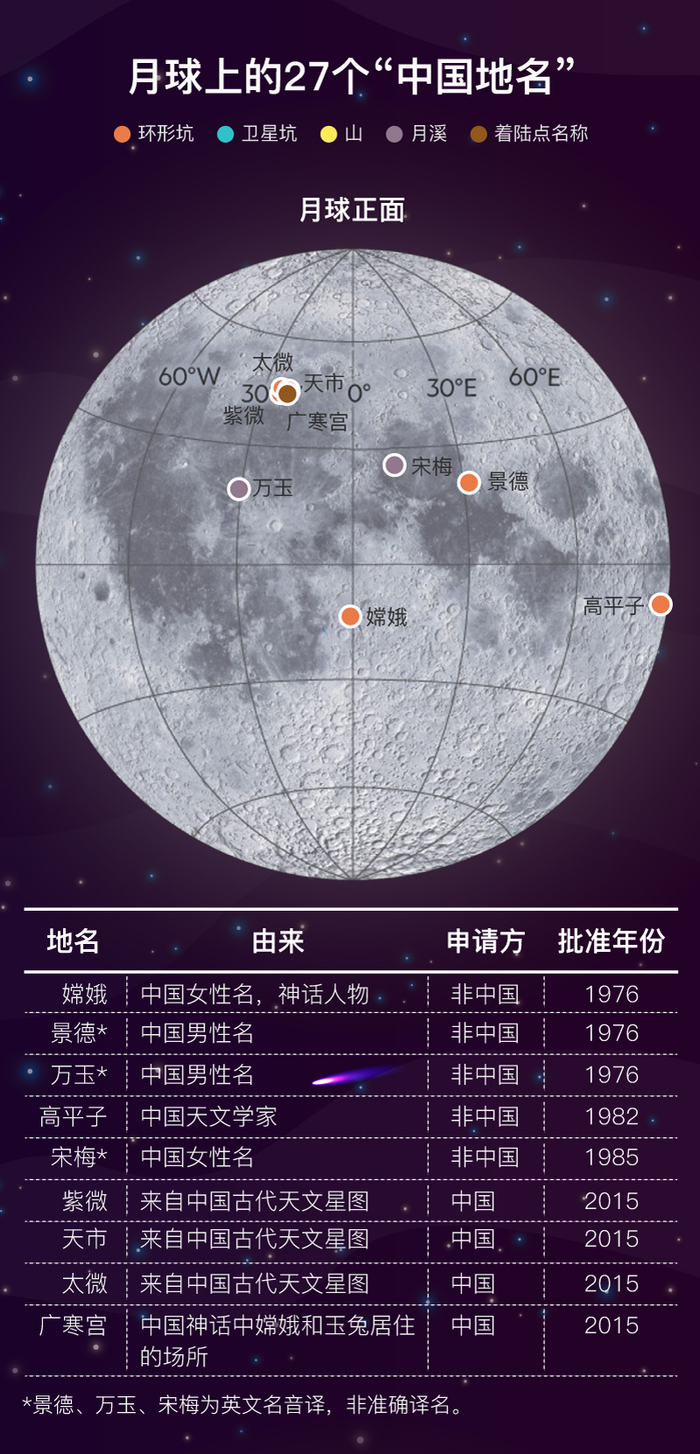 而最近的一次,就是2019年1月嫦娥4号登月后,中国一次获批了5个月球地名。这里的名字还与中国古代天文星图有关。