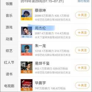 目前,周杰伦已经超过朱一龙、易烊千玺蹿至第二位,即将向蔡徐坤发起总攻!让我们拭目以待!