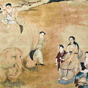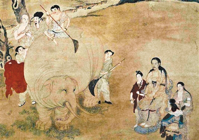 明清时期京城有一个节令习俗叫“伏日洗象”,清代画家丁观鹏的《乾隆皇帝洗象图》就描绘了此景。