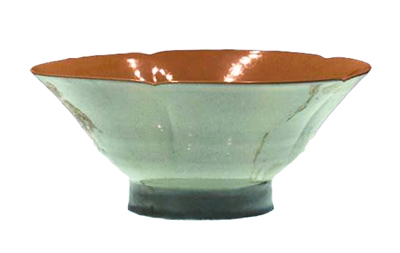 碗是唐代越窑青瓷非常重要的器形,碗口形状可分为荷叶、海棠和葵瓣形等,碗底则多见玉璧底、玉环底和圈足等形制。唐代青瓷碗一般通体施釉,包括足内外均施釉,釉层较厚,釉面匀净,一般无流釉现象,碗足上常留有数个泥点垫烧痕迹。考古中,唐长安城坊市遗址多有青瓷碗残器出土,今西北大学太白校区位置原属唐长安城太平坊,此处曾出土过底部为玉环形的唐代青瓷碗标本,据其使用痕迹看,应为茶具。唐代茶圣陆羽在《茶经》中极为推崇青瓷茶碗,认为“类玉”“似冰”的越窑青瓷碗与绿色茶汤相得益彰,故能达到“益茶”的功效。