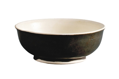 据了解,考古工作者经常在唐长安城坊市遗址中发现唐代黑瓷碗的残器,这些碗的装饰多为敞口,黑白相间,碗底、口沿、底足常施白釉或不施釉,器壁施黑釉,外观与现在的酒碗很相似,大小则更像吃甑糕用的小碗。这些黑釉瓷碗的胎质多非常粗松,由于制作者充分发挥了黑白釉对胎体表面的掩饰作用,所以看起来还是比较洁净的。这种黑瓷碗在唐长安城内出土量很大,其功能与现代的黑瓷碗几无差异,为一般市民日常所用;从制作工艺上看,其对原料的要求也没有青瓷、白瓷那么严格,有的更接近于陶器。