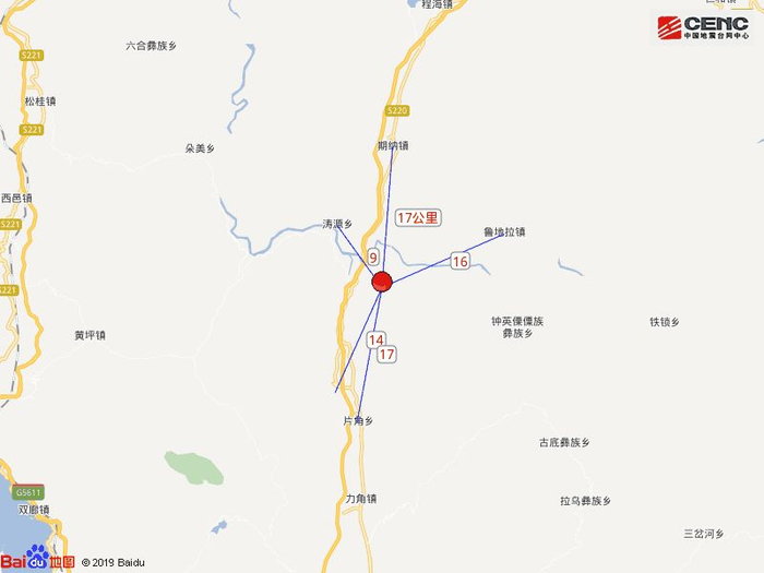 附近村镇:本次地震周边5公里内的村庄有下六村、鸡腿山、领干田、梅子青、东华村、四家村、花坪、红光村、枯木、小村,20公里内的乡镇有涛源乡、期纳镇、片角乡、鲁地拉镇、河曲乡。