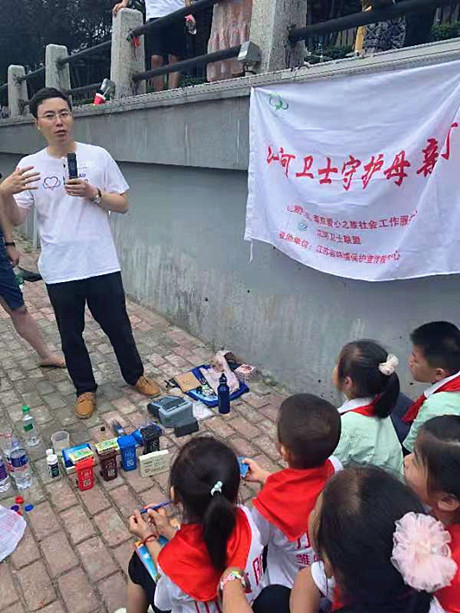 活动的开始,盛建老师向小河长们介绍了此次活动意义:秦淮河是我们世代生活的城市——南京的母亲河,曾经养育了我们祖祖辈辈。但是秦淮河水从哪里来,向哪里去?随着城市日新月异的发展,秦淮河的水质如何?哪些因素会影响秦淮河的水质?我们应该如何做?通向千家万户的自来水又是经过怎样的过程,达到怎样的标准?和我们日常饮用的纯净水、矿泉水又有何区别?在今天的活动中,都将一一向小河长们揭晓!