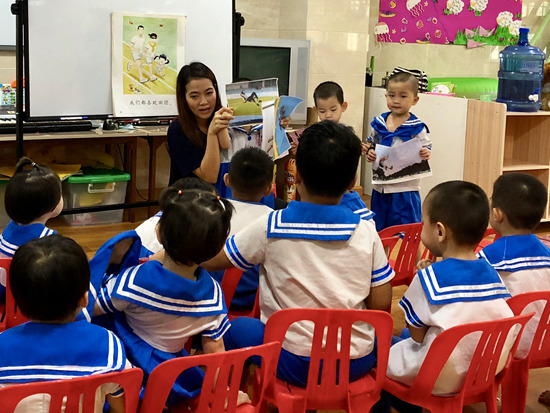 苏雪蓉在缅甸一家幼儿园教孩子们学汉语。苏雪蓉供图