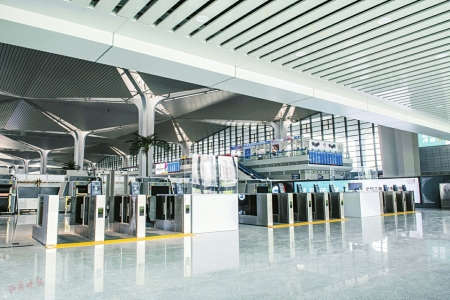 在高架层进站口,中部的10个自助实名验闸机和2个人工实名验通道日常开放;到了春暑运、节假日等客流高峰期时,将根据进站口客流情况,动态开放南、北两侧进站口的3个自助实名验闸机和2个人工实名验通道。在高架层进站口外的南北两侧,各设置了14台自动售取票机,方便旅客自助购票和取票。