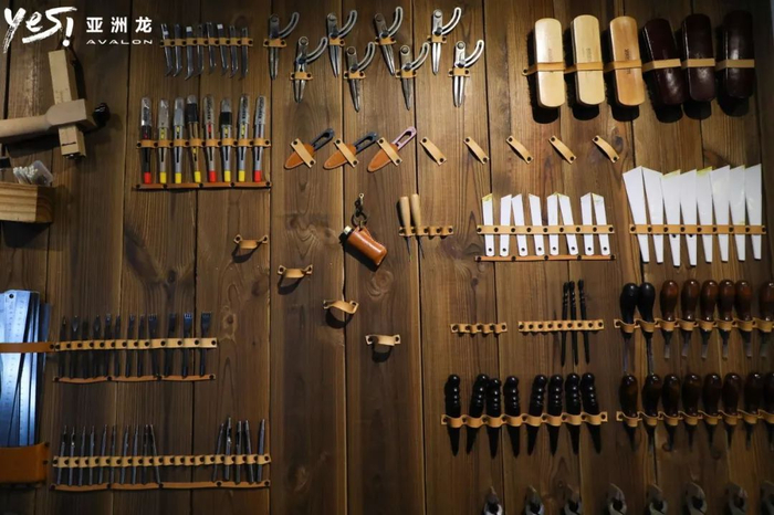这个初夏,在“Yes!亚洲龙•品阅杭城”之行中,我幸运地打卡了斤手工皮具。一进店内,满目琳琅的皮具和皮料,摆放的错落有致,在暖黄的灯光下,显得富有有情趣,充满魅力。偌大的工作台上摆放着许多工具和针线,富有年代感的痕迹见证了许多具有心思的作品。