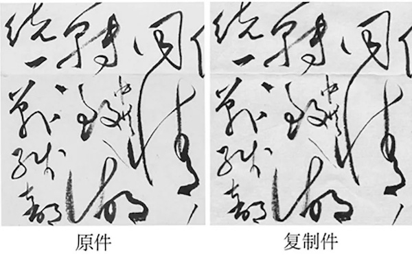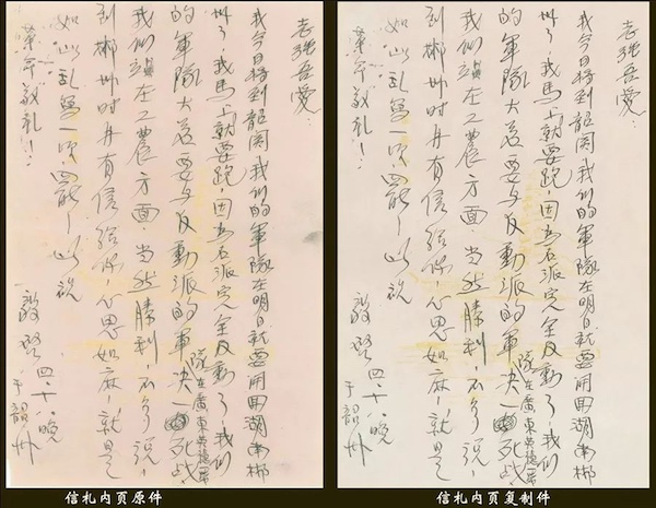毛泽东信札(局部)原件、复制件对比图