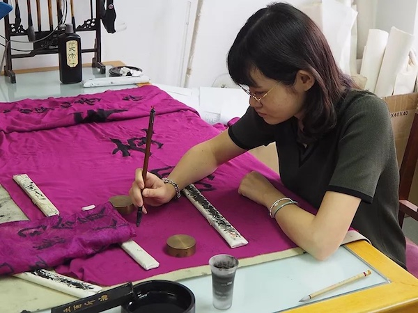 “如何做到‘真’,就是文物复制要依照文物的体量、形制、质地、纹饰、文字、图案等历史信息,基本采取原技艺方法和工作流程,制作与文物相同制品。”王秋仲解释道,如原件是已经泛黄的纸,复制的用纸就需要先染色,然后再书写。如廖运周书丝绸彩旗的复制临摹,就要用丝绸。复制不是复印,有的博物馆直接用原件的复印件代替原件展出,复印件的质地、笔迹等都与原件有明显的差异。