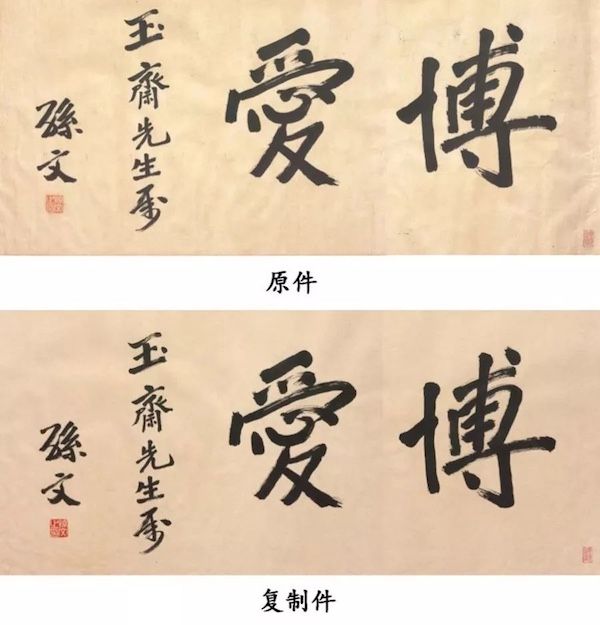 孙中山《博爱》原件、复制件对比图