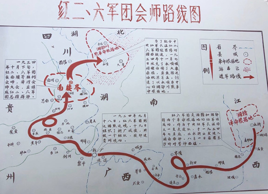 红二、六军团会师路线图。 (资料图片)