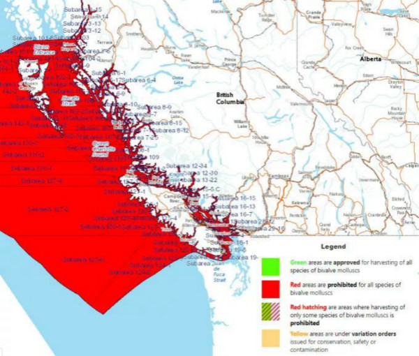 图说:整个BC西岸海域全部沦陷。图片来源:加西周末