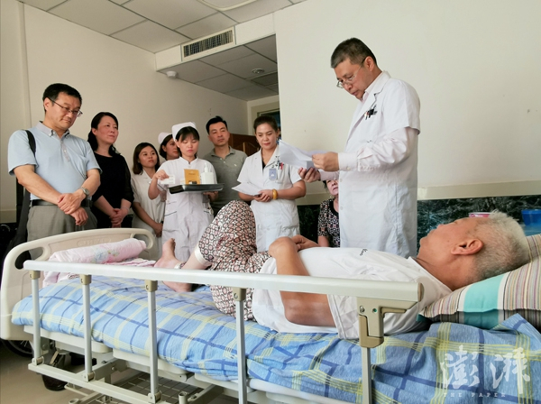 7月11日,海派中医杨氏针灸传承总基地负责人沈卫东教授在喀什二院查房。作为第三代杨氏针灸传人的沈教授继承并谨记杨氏针灸创始人杨永璇的话,“脱离了经络,开口动手便错”。在他此后的行医生涯中,他要求年轻的医生们对经络学的重视,第一堂课便是背诵14条经脉古文。周一辰 图