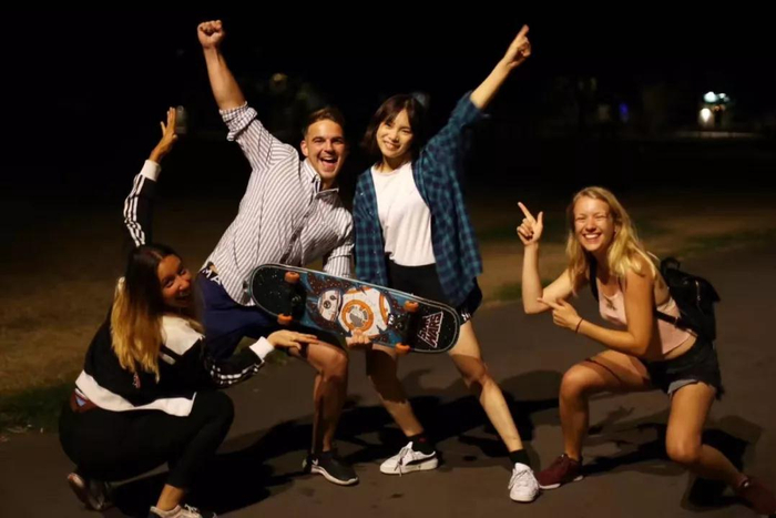 信科院2016级学生杨乔越在剑桥大学与轮滑社成员合影
