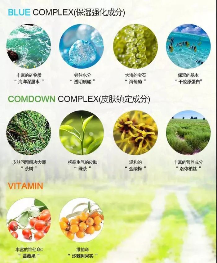 茶树、绿茶、金缕梅、洛依柏丝等天然植物提取成分滋养抚慰肌肤。