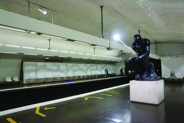 巴黎地铁13号线Varenne站位于罗丹美术馆下方,车站里的罗丹雕塑识别性强