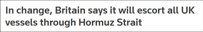 就在此时,英国提议在霍尔木兹海峡进行多国联合护航,并得到了法国、意大利与丹麦的初步支持。