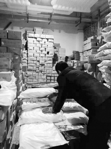 “从早上7:30开始工作,中午休息2个小时,下午接着干活。最晚一次干到凌晨4点。写货运单的时候手冻得发抖,特别难受,基本上我写10分钟到20分钟就要出去一下。戴上手套的话,手写字又不方便,所以我们基本上出来不戴手套,因为要提高速度。”王师傅说。