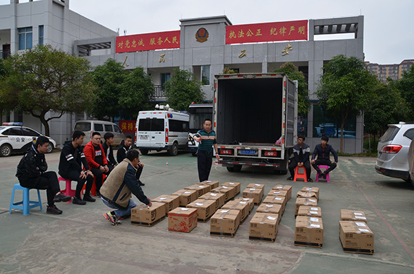 3月26日上午,蒋某杰通过某快递公司联系到一辆厢式货车,将27箱装有银行卡、手机卡等的纸箱封箱装车,准备前往外地。此时,崇左市公安局刑侦支队民警已在高速路口的边检站布控。