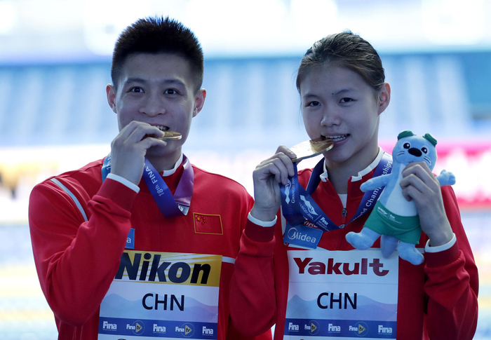 ▲当地时间2019年7月16日,韩国光州,2019光州游泳世锦赛混合全能跳水决赛赛况,中国选手杨健/林珊夺冠。图据ICphoto