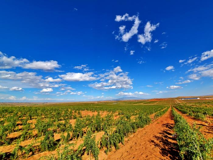 凭着这股吃苦耐劳的拼搏精神,2014年春天,荒芜的土地上种下了45万株枸杞苗,九成都活了下来。如今,这里已成为宁夏名列前茅的标准化庄园枸杞生产基地。