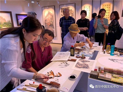 展览特意开设了中国书法与国画体验区。林笑初现场指导观众用毛笔体验中国书法,并用花青、赭石等中国传统颜料进行水墨画创作。活动吸引了众多韩国民众,他们对中国丰富的自然遗产和文化遗产赞不绝口。 (美 文)