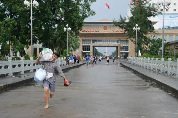 早上8点通关时间,采访团看到令人惊讶的一幕:只见对面肩扛手提大包小包的越南边民一路飞奔,跨过大桥上的分界线,跑进东兴市境内,其中有个人居然是光着脚一路小跑过来。