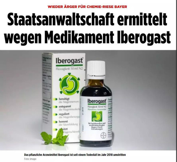 德国拜耳制药的Iberogast肠胃调理液近日被推上风口浪尖。德国科隆检察机关发布消息称,怀疑一起肝功能衰竭死亡与服用该药物有关。