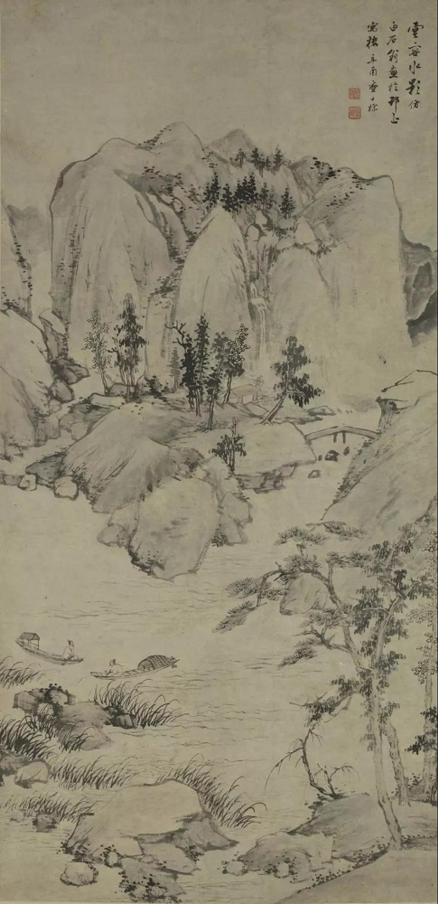 清 查士标 《云容水影图轴》纸本设色 康熙辛酉(1681) 天津博物馆藏