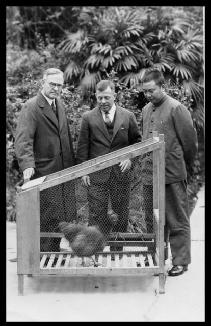 一次,几个美国专家访问河北定县,他们惊讶地发现那里的土鸡一年只能下68个蛋,且个头极小。正在此地推广乡村改造运动的晏阳初博士说:“中国的母鸡已经下了三千年的蛋,它们大概是太累了。”丁克生未必知道这个故事,他于1935年引进来杭、落岛红、澳洲黑等优良母鸡,与本地良种鸡进行杂交改良后,所下鸡蛋比原来增大近两倍,产蛋量也提高96%。