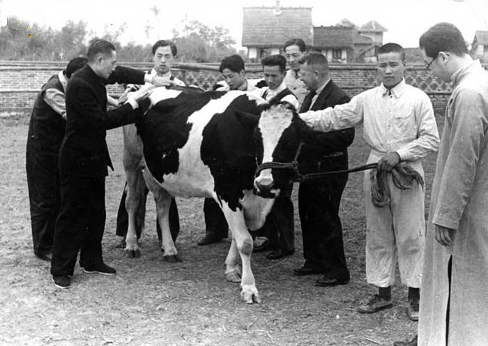 本校丁克生君热心改良四川乳牛,工作已垂十五年矣。溯自民国十三年运来荷兰奶牛二头,与本地乳牛交配后,迄自今日被改良之乳牛已达一百五十头之多。现此地纯种荷兰乳牛,除最初运来的二头外,蒋夫人有数头在此,产奶甚多……