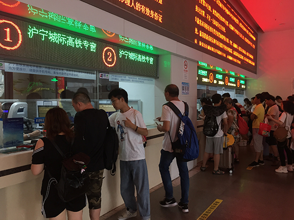 7月27日上午8时许,铁路上海站南广场的联合售票大楼内一直滚动播放着实施铁路电子客票的提醒信息。继2018年11月22日铁路部门在海南环岛高铁进行电子客票应用试点之后,沪宁城际铁路20个车站今天也迎来了电子客票试点的第一天。