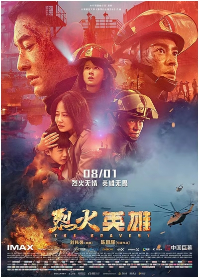 《烈火英雄》根据真实消防员事迹改编,刘伟强、李锦文监制,陈国辉导演,黄晓明、杜江、谭卓领衔主演,杨紫、欧豪特别出演,讲述了消防战士不畏牺牲,奋战在海港码头火灾现场的动人故事。影片大规模展现了史无前例的火灾场面和消防救援,将真实的消防员形象与英雄故事搬上大银幕。