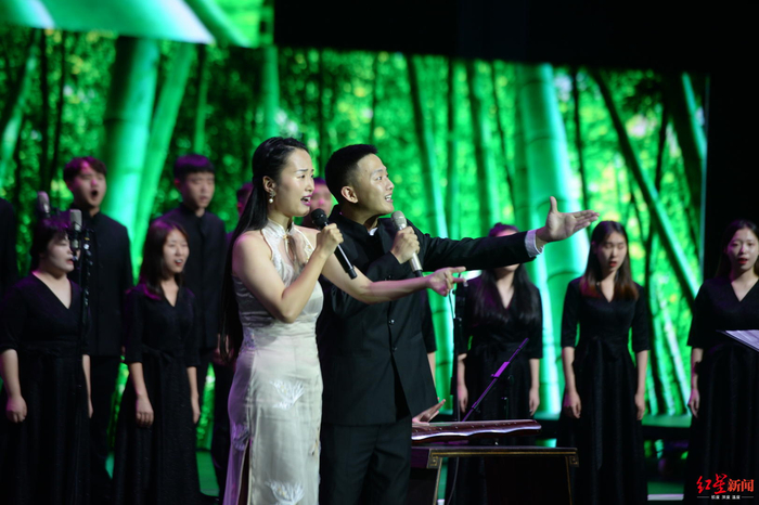 在当晚的音乐会上,除了两首改编于国外歌曲的《我独自彷徨》《绿袖子》之外,其他绝大多数都是耳熟能详的古诗词。“在创作中采用纯粹的民乐伴奏、戏曲的方式演唱,这种‘修旧如旧’的写作方式和演唱方式是对传统文化的充分尊重,也是对本土化合唱音乐形式的先锋探索,更是以音乐的形式对建国70周年来文化成就的展示。”主办方的相关负责人告诉红星新闻。