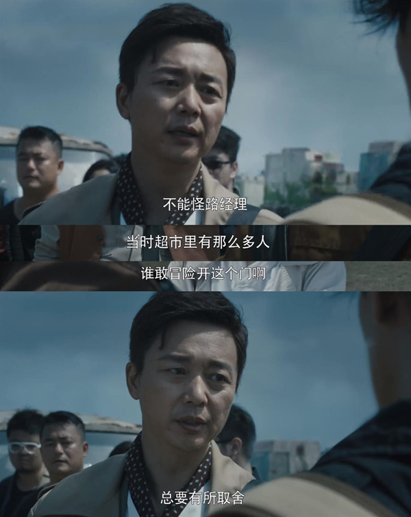 刘奕君饰演的陈立,颇像《一出好戏》中于和伟饰演的张总+《釜山行》中自私冷漠的金常务,他有着商人的精明和大局观,未雨绸缪,善于抓住人性的弱点,蛊惑他人。同时,他是典型的利己主义者。他拒绝开门让躲避蝙蝠的人进来;明明约定下午4点离开荒岛,结果他3:30就催着上火车打算抛下其他人先走;当他偶然发现了一艘小型游艇后,他也不打算告诉其他人,而是想着修好后偷偷离开……