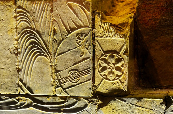 六朝博物馆收藏的石子岗“乱码”竹林七贤砖印模画局部