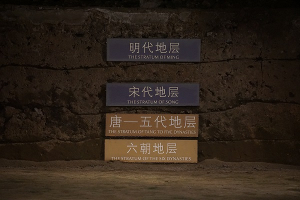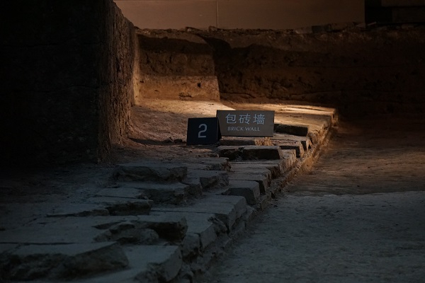 六朝博物馆展陈的 夯土包砖的六朝时建康城的城墙