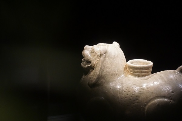 “造型美”部分中的一件被称为是“镇馆之宝”的青瓷莲花尊和六朝青瓷中的典型器型之一的的魂瓶颇为独特。