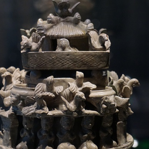 胡阿祥:从级别上面来看,六朝博物馆展陈的文物中一极品有二十多件。比较出彩如青瓷釉下彩羽人纹盘口壶、青瓷莲花尊,此外还有南京北郊象山东晋王氏家族墓出土的陶牛车和陶俑,那个是当时城市贵族生活的一个很鲜明的反映,还比如谢鲲墓志。学术界都认为六朝时代不是厚葬而是薄葬,六朝博物馆里面出土的六朝时候的金器、玉器则是反面的例证。我们也以仿制品形式做出来的三国孙吴的青瓷羊。三国孙吴的青瓷羊曾经被范文澜主编的《中国通史》的一册作为封面。