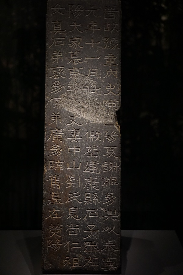 位于二层的六朝风采展厅是博物馆展陈的重点,展厅以修修绿竹和书写着《兰亭集序》的帷幕做隔断,营建出指引着观众观赏文物的曲折小径,昏暗的展厅灯光和影影幢幢的竹子掩映着文物,极具意境。展览也由审美视角和文物类别为限,从色彩(瓷器)、造型(陶俑、魂瓶)、线条(墓志书法、砖刻壁画)的美学来诠释六朝艺术。展陈上也运用了“枯山水”的营造手法,以“春水留生”、“夏露停云”、“秋风过耳”、“冬谷枯荣”四个小品错落有致的分布在瓷器、陶俑、石刻、书画等单元中,移步换景。