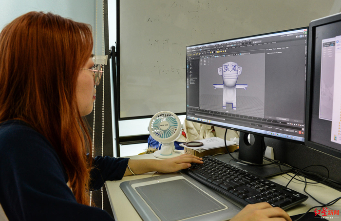 来可可豆已经两年的丁恋晶,今年23岁,她告诉红星新闻记者可可豆是她进的第一家公司,能够参与到这一次电影的制作自己很幸运。丁恋晶是个喜欢笑的女生,她告诉红星新闻记者自己最喜欢电影里说川普的太乙真人,因为他很搞笑。丁恋晶以前学的是美术设计,这一次主要负责的是动画中的3D模型,“模型就是我们看动画之前,它有一个固体的人物在那里,还有它所在的那个场景,都是模型,我负责的场景比较多。电影的每一个画面出来,比如说里面的每一束草丛,都必须根据每一个镜头的画面效果摆一遍。”当红星新闻记者问到这份工作是否枯燥时,丁恋晶笑着说自己对模型很感兴趣,不会觉得无聊。