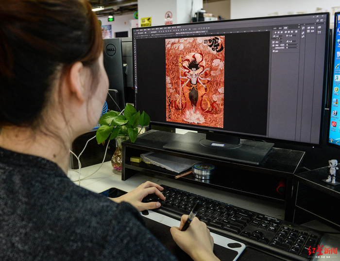 今年刚刚大学毕业的周思含,她作为可可豆的实习生,此次也参与了电影2D美术的制作。她告诉红星新闻记者,虽然自己这一次没有独立完成的作品,但是也很庆幸参与到了当中,“我来这里实习,也是想看看自己未来的一个方向,来提高自己。”